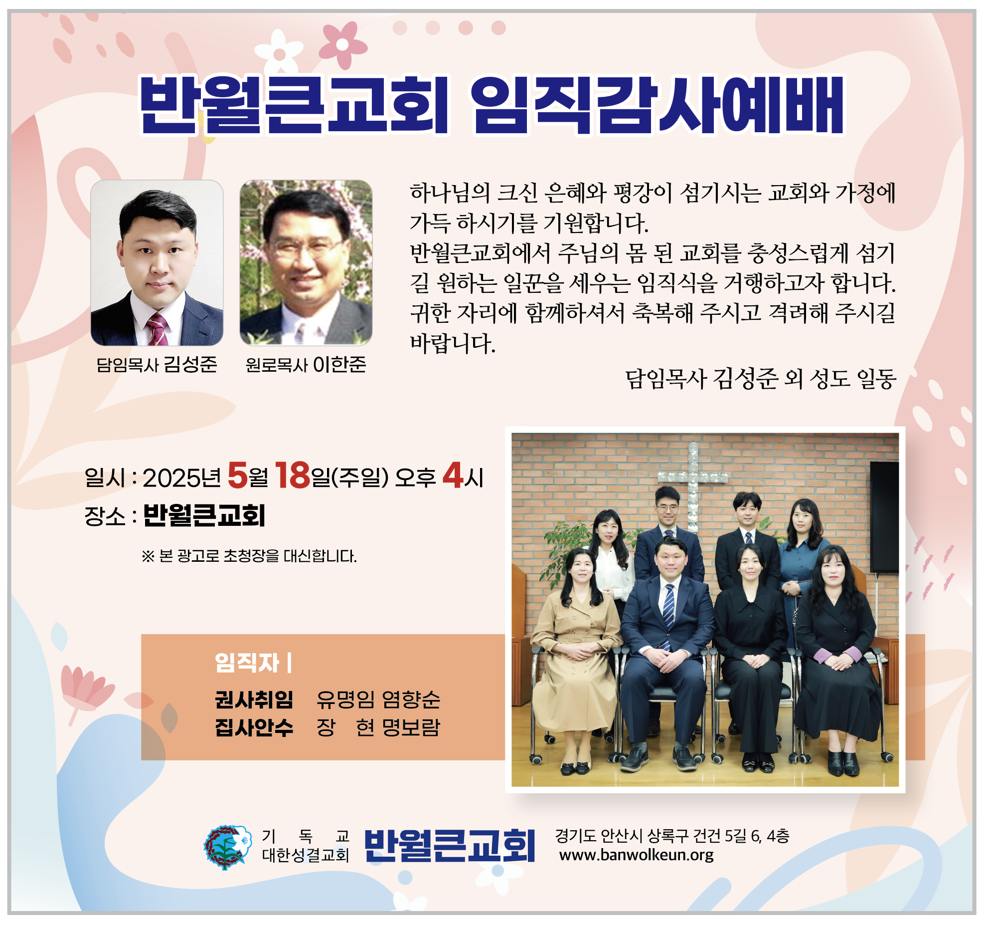 오시는길 -반월역1번출구에서 나와서 창촌초등학교 방향으로 도보 8분 -버스 이용 : 8, 8-1, 22, 90, 99, 330 서해아파트건너편 정류장 하차
